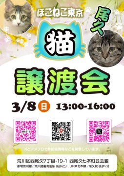 ほごねこ東京譲渡会@尾久 徒歩2~7分