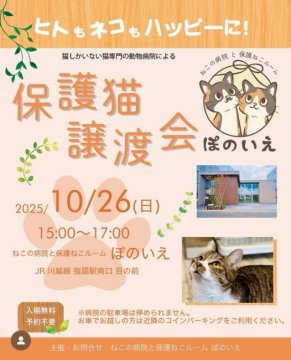 【さいたま市西区】10/26(日)猫専門病院「ぽのいえ」保護猫譲渡会
