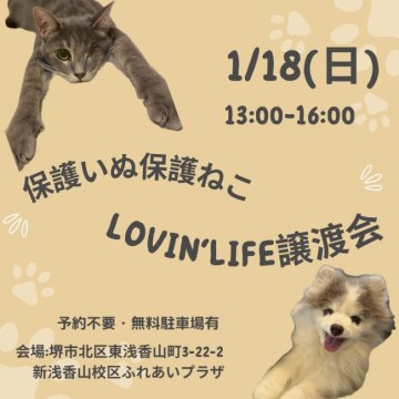 1月18日(日) ラビンライフ譲渡会 大阪府堺市
