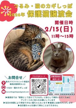 つるみ・猫のカギしっぽ譲渡会 JR鶴見駅西口歩5分室内開催