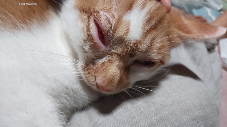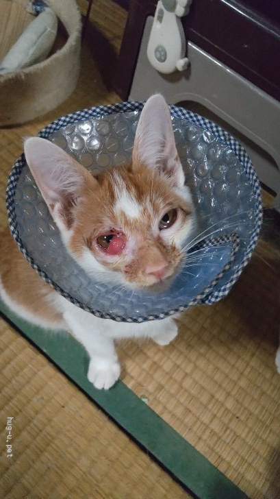 チェリーアイも良くなり、ワクチン接種も済ませ、私も台風後のバタバタが落ち着いてきたので、しんちゃんの里親募集情報をハグーに掲載しようと準備をしていたところ、なんとしんちゃんの左目の瞬膜が腫れてしまいました。猫のチェリーアイ珍しいんじゃなかったんかいな?