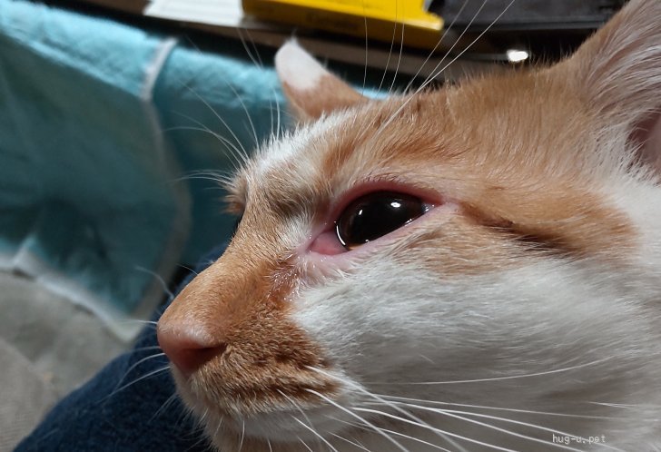 その後仕事に行って帰ってきたら、左目のチェリーアイは引っ込んでいました。