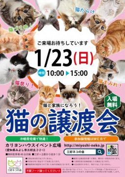 開催予定の譲渡会情報を紹介します。 地域などで絞り込み、お近くの譲渡会をお探しください。