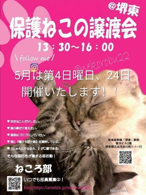 里親マッチングサイト「hugU(ハグー)」の犬や猫の譲渡会一覧です。 譲渡会に参加する保護団体・保護活動者から犬や猫の里親になることができます。 里親募集中の犬や猫をお探しの方は是非ご覧ください。 日本全国すべてのペットが終生幸せに生きていくためのお手伝いをしています。