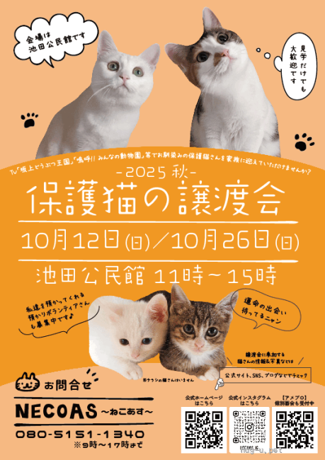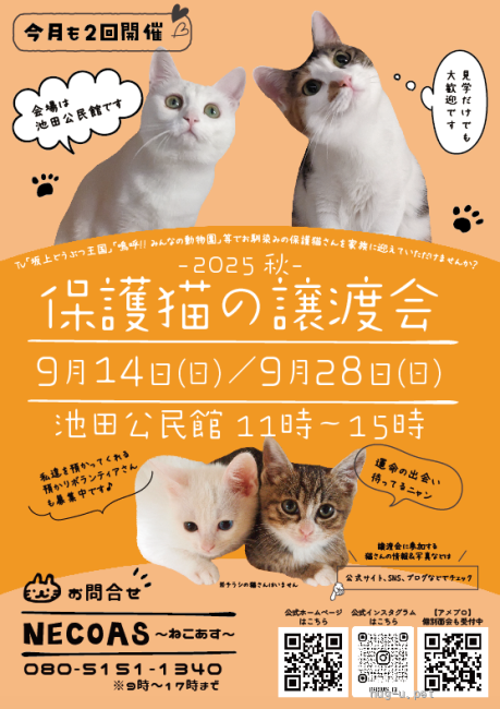 地域などで絞り込み、お近くの譲渡会をお探しください。
