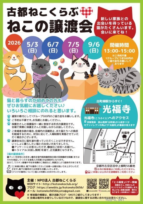 里親マッチングサイト「hugU(ハグー)」の京都府の犬や猫の譲渡会一覧です。