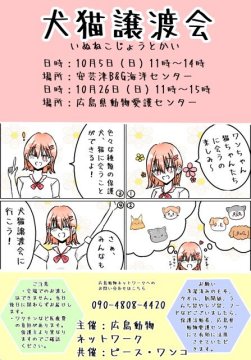 広島県の譲渡会に参加する保護団体・保護活動者から犬や猫の里親になることができます。