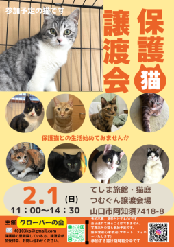 山口県の譲渡会に参加する保護団体・保護活動者から犬や猫の里親になることができます。