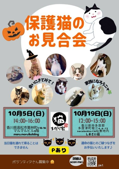 香川県の譲渡会に参加する保護団体・保護活動者から犬や猫の里親になることができます。