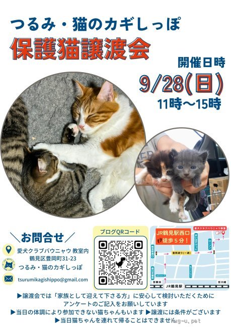 つるみ・猫のカギしっぽ譲渡会記事: https://tsurumineko.blog.fc2.com/blog-entry-3466.html