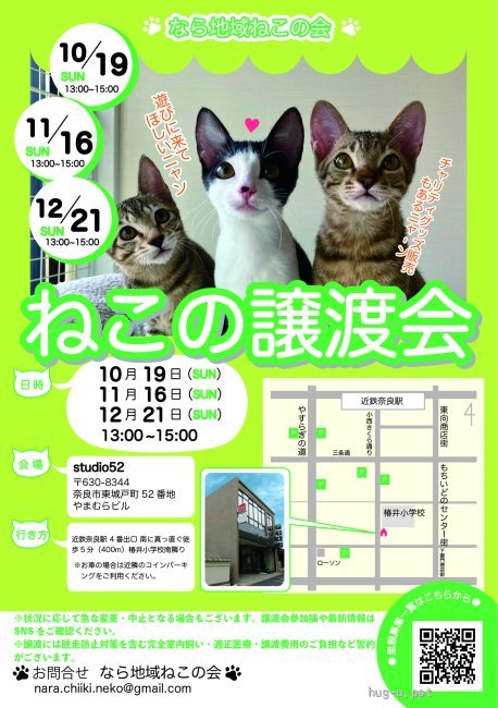 毎月奈良市ならまちにて猫の譲渡会を行っております。