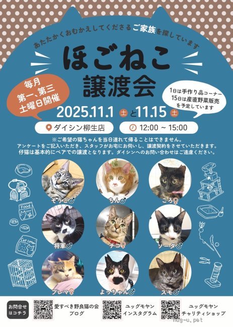 愛すべき野良猫の会主催の、ほごねこ譲渡会です。