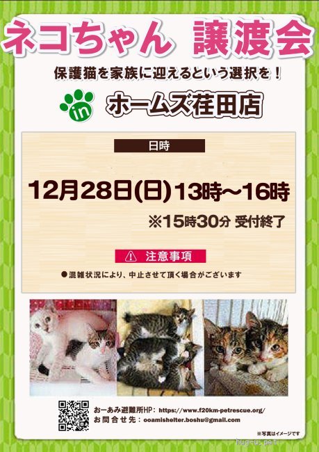 12月28日(日)荏田にて譲渡会開催!