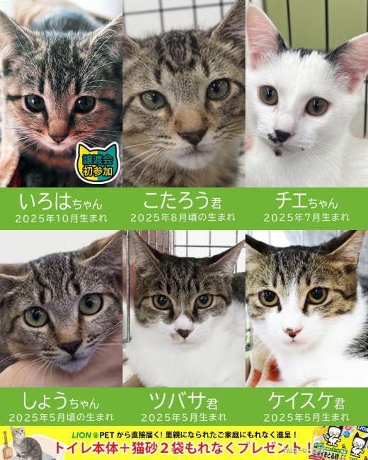 カワイイ猫たちが新しい家族のお迎えをお待ちしています。