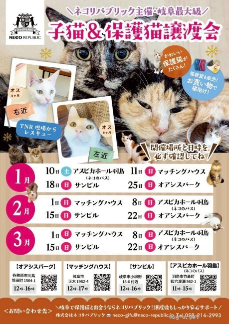 参加猫情報はホームページやインスタグラムにて発信予定です!