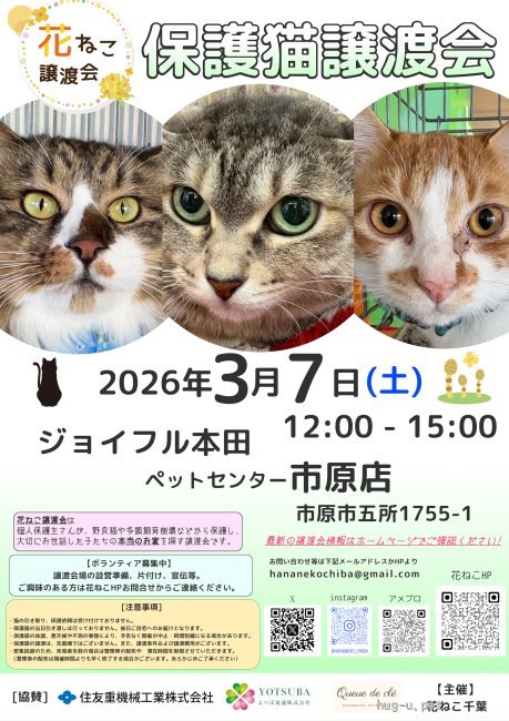 花ねこ譲渡会は、個人保護主さんが保護して大切にお世話した猫の「本当のお家」を探す譲渡会です。