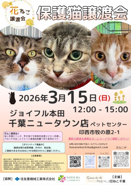 【花ねこ千葉】開催予定の譲渡会