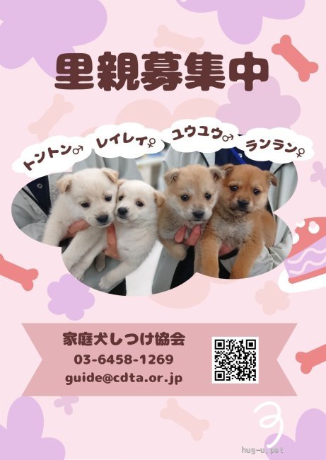 当施設にて、保護犬ちゃんの譲渡会を開催します! 今回はトントンちゃんが参加予定です★ 事前ご予約制となりますので ご参加ご希望の方は下記のメールアドレスへお願いいたします。 ご返信が遅くなることもございますが、参加頂けますのでご安心ください! 皆様のお越しをワンちゃん達とお待ちしております♪ 【ご予約・お問い合わせ】 特定非営利活動法人 家庭犬しつけ協会 MAIL:info@cdta.or.jp 【ホームページ】 https://cdta.or.jp/