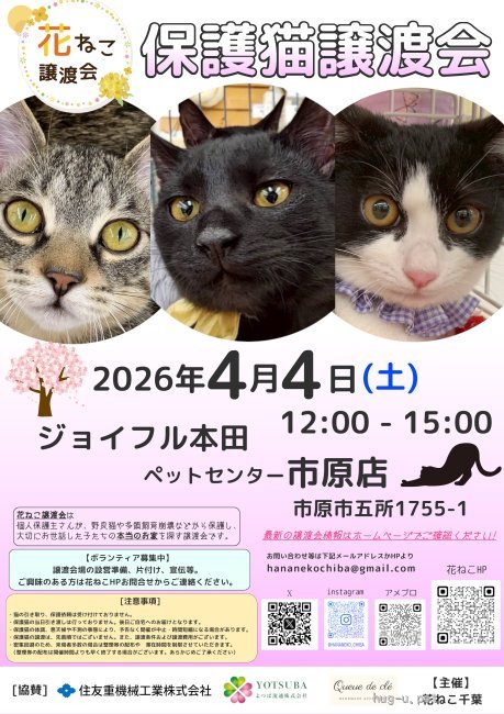 【花ねこ千葉】開催予定の譲渡会