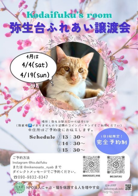 【予約】InstagramのDM(@ko.daifuku)または電話(伊藤:090-9832-8347)※予約時に詳細住所を案内