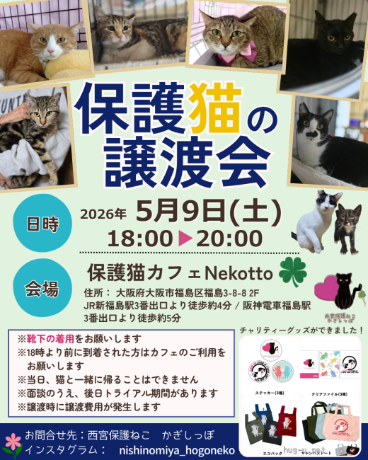 ※譲渡会に関するお問い合わせは、西宮保護ねこ かぎしっぽへお願いいたします。