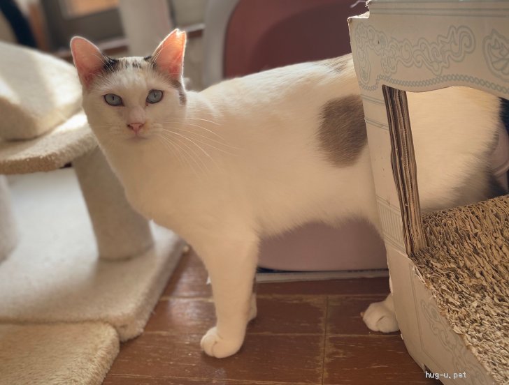 | 性格や特徴 | ブルーアイのとてもキレイな女の子です。 人馴れはまだまだ修行中で、近くには来てくれますが触ろうとすると猫パンチをしようとします。 時間をかけて少しずつ見てくださる方を募集します。 |