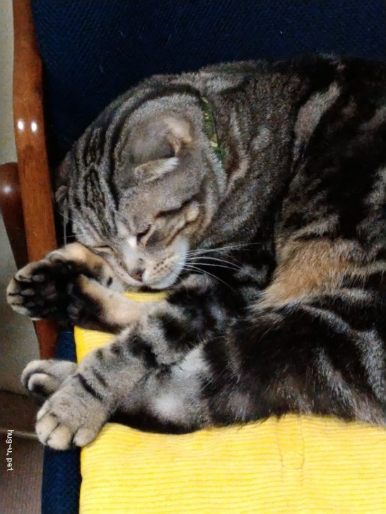 ※その後の健康診断でレントゲン検査をし、腰骨の左側にボルトがあり、過去に手術をした形跡があることが判明しました。今は痛そうな様子はありませんが、スコティッシュでもあることですし、今後、股関節炎などが出てくる可能性もあるかもしれません。