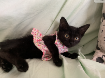 性格や特徴 可愛い黒猫、ありえーるちゃんです。大変小柄ですが、人懐こく元気に遊びます。他の猫ちゃんともすぐに仲良くなれます。