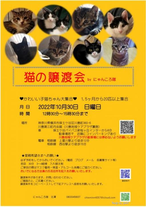 その他備考 10/30(日)の譲渡会(保土ケ谷区川島第三町内会館)に参加します。