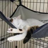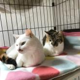 | 性格や特徴 | 毛色:白三毛(白多めの三毛) レスキュー当時は痩せていましたが、全抜歯及び口腔炎症性ポリープの治療を継続しご飯が食べられるようになりました。 怖がりですが撫でたりブラシをすることができます。 他の猫には威嚇してしまうので、一頭飼いに向いています。 同居のラブちゃんにだけは威嚇しません。 喉の炎症のため、1~2ヶ月に1度通院、自宅にて2~3日に一度投薬が必要ですが、心優しいアイちゃんを家族にしてくださる方を募集しています。 |