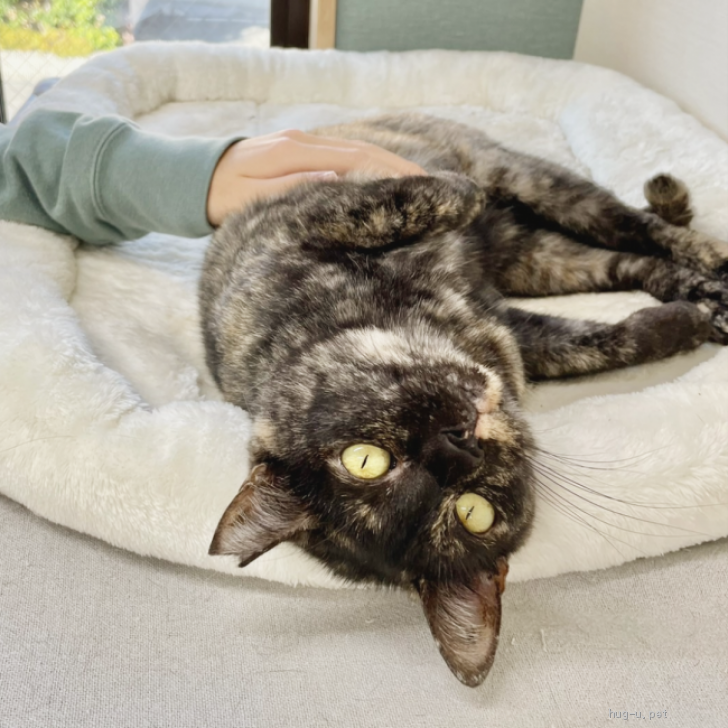 人見知りするので、最初は少し怖がるかもしれませんが、ゆっくり触っていただけると、すぐにゴロンゴロンして甘えます。