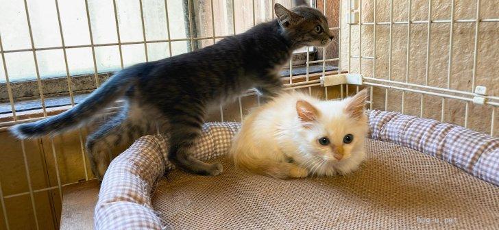 | 性格や特徴 | グレーの毛並みに、薄い縞々模様の珍しい柄です。 お目目が真ん丸でぱっちり。 かわいい女の子です。 一緒に写真に写っている洋猫ミックス白の子猫女の子と仲良く過ごしています。 |