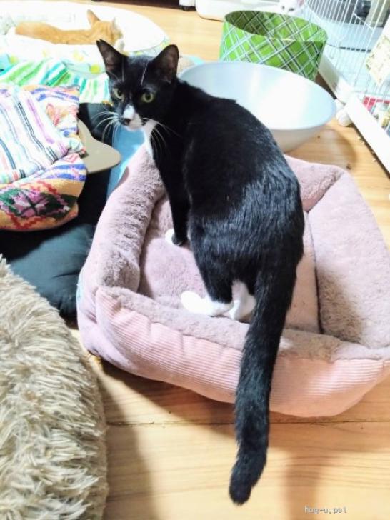 ○1歳くらい(2024年4月時点)の黒白の男の子です。体重は3.65kg(2024年11月11日時点)です。
