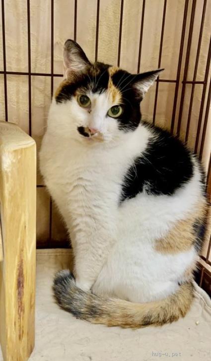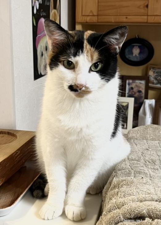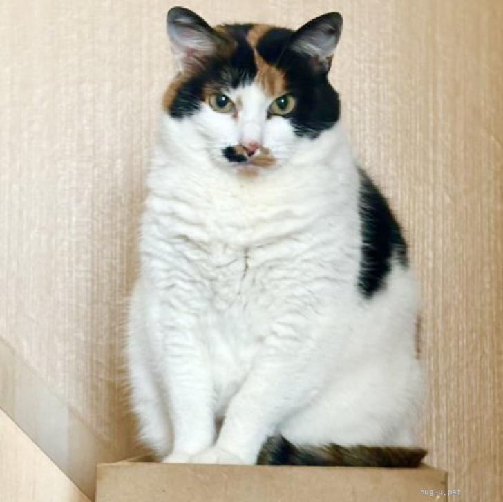 綺麗な三毛の柄が自慢の子。よく食べる健康優良児で、最近はぽっちゃり体型に…♡