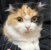 サラサラヘアーの長毛三毛スコティッシュフォールド
