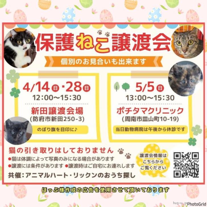 4/28防府市新田での譲渡会に参加予定ですが、個別のお見合いにも対応します。