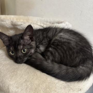 | 性格や特徴 | はちみつのはっちです♡ とっても明るい性格で、いつもルンルンで遊んでいます(^^) 甘え方が上手で、お膝に飛び乗って来たり、なでなで抱っこが大好きな可愛い子です。 黒猫というよりは、ブラックスモークという色柄です(^^) 推定2024年4月生まれです。 |