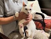即戦力の推定2歳くらいの白キジの男の子です。鍵尻尾で、お顔としっぽがキジ模様です。人が大好きで子供でも抱っこできます。とても甘えん坊で可愛くて預かりのお家でも一緒に寝ています。お子様がいるお家や初心者様、また猫より人が好きなので1匹で溺愛したいご家族様におすすめです。人馴れ家なれ抜群なので、ケージなどをご用意する必要はありません。保護してからシャンプーしてとても綺麗な白キジちゃんになりました。