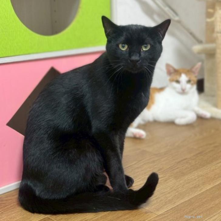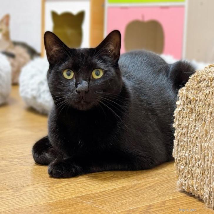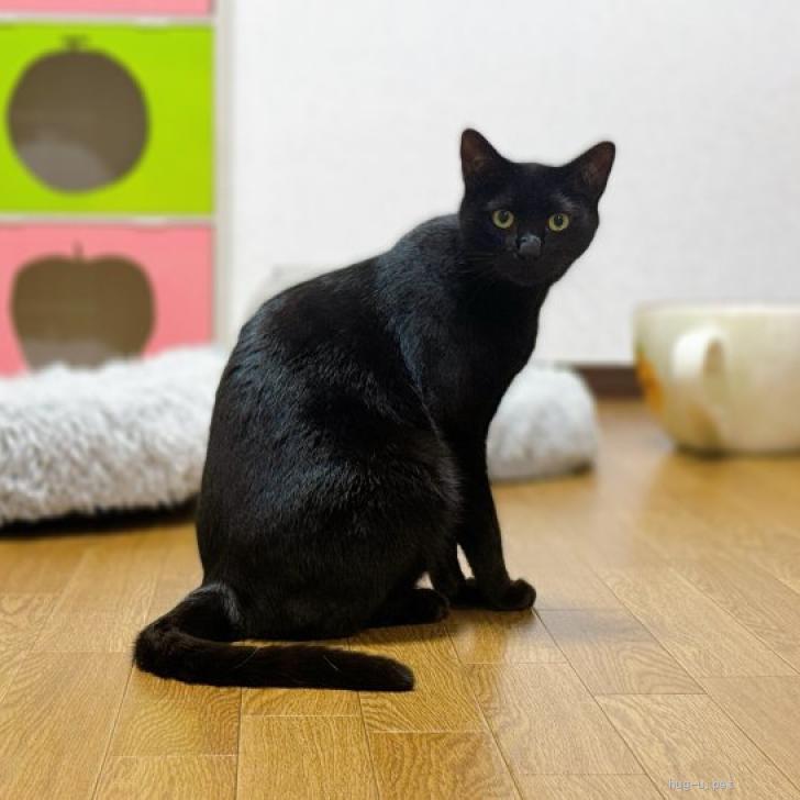 みこしくんは黒猫界のキングのような存在で、男らしさが際立っています。ツヤツヤの黒い毛並みと筋肉質な体が自慢で、いつも目を引きます。お手入れが行き届いており、顔もシュッとしていて男らしい印象です。お外で1ヶ月半ほど過ごしていたため、人への警戒心が強く、心を開くのに時間がかかりますが、おもちゃやおやつには興味津々で、他の猫に負けずにおやつをGETすることも。お気に入りの場所でお昼寝していることが多く、静かな時間に活動するタイプです。日光浴も楽しみ、自分のペースを大切にしています。警戒心が強いため、臆病な性格を理解し、根気よく接してくれる経験者の方にお迎えしてもらいたいと思っています。みこしくんに手を差し伸べてくださる方をお待ちしています。