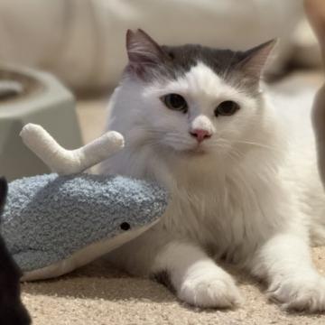 グレーと白の長毛ちゃんなので見た目もふわふわで