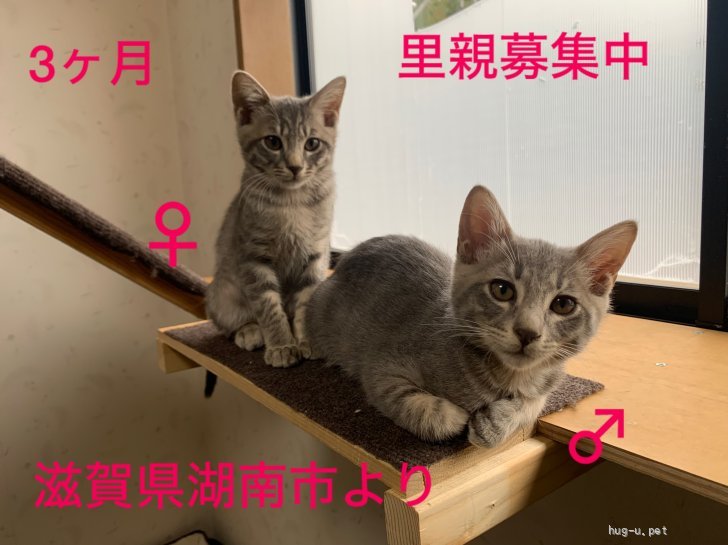 グレーのキジトラ♂♀です。仲良しなので一緒に迎えてもらえると安心です。