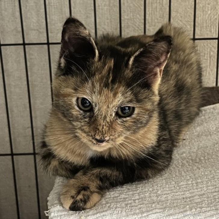 ○生後3-4ヶ月くらい(2024年12月上旬時点)のサビ猫の女の子です。