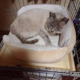 性格や特徴 少しクリーム色の短毛で、お顔はシャム系です。 ブルーの瞳はきれいです