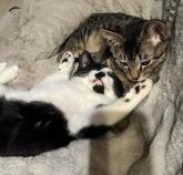 兄弟の黒白ハチワレこんぶくんと仲良しなので、一緒に迎えていただけると嬉しいです。(必須ではありません)