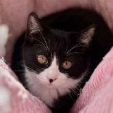 性格や特徴 慎重でおとなしめ、兄妹の後ろに隠れてしまうようなシャイな性格ですが、チュールタイムはかなり積極的になってきました。攻撃性はまったくなく、優しい性格で他の猫とも仲良くできます。
