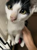 募集の経緯 野良猫が民家の敷地で出産した仔猫でした。保護主様のご意向で、仔猫が成長したら母猫と一緒に避妊手術を受け、手術後リターン予定でしたが、生まれて2ヶ月ほど保護主さんの自宅内でお世話されていたため、外猫として暮らしていくことは難しいと判断し、私の方で2023年7月に兄妹4匹を保護させていただきました。白ハチ以外の兄妹は、素敵な里親様と出会うことができ、元気に巣立って行きました。