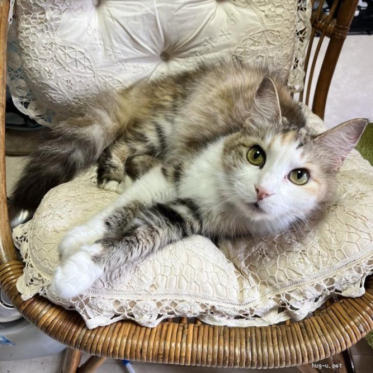 ○推定14歳(2025年4月時点)の、中毛の淡い三毛柄の女の子です。体重は2.5kg(2025年3月27日時点)です。