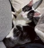 常に構って欲しい猫さんで、一通り撫で撫でされた後に、預かり主の膝の上でくつろぐのが日課になりつつあります。