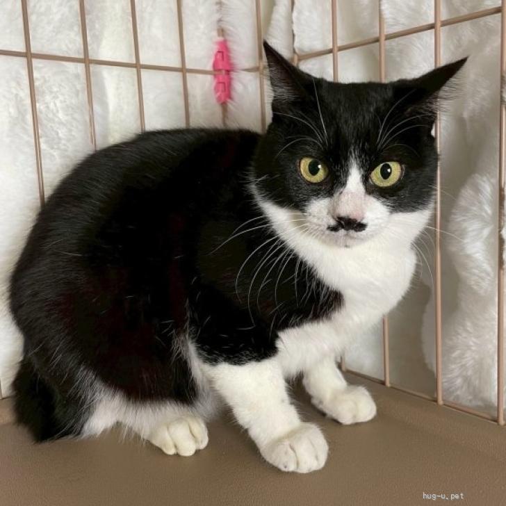 掲載日:2025/04/19 掲載期限:2025/04/27まで【4/27譲渡会出場】黒白ちょびヒゲ♀@約1歳未満
