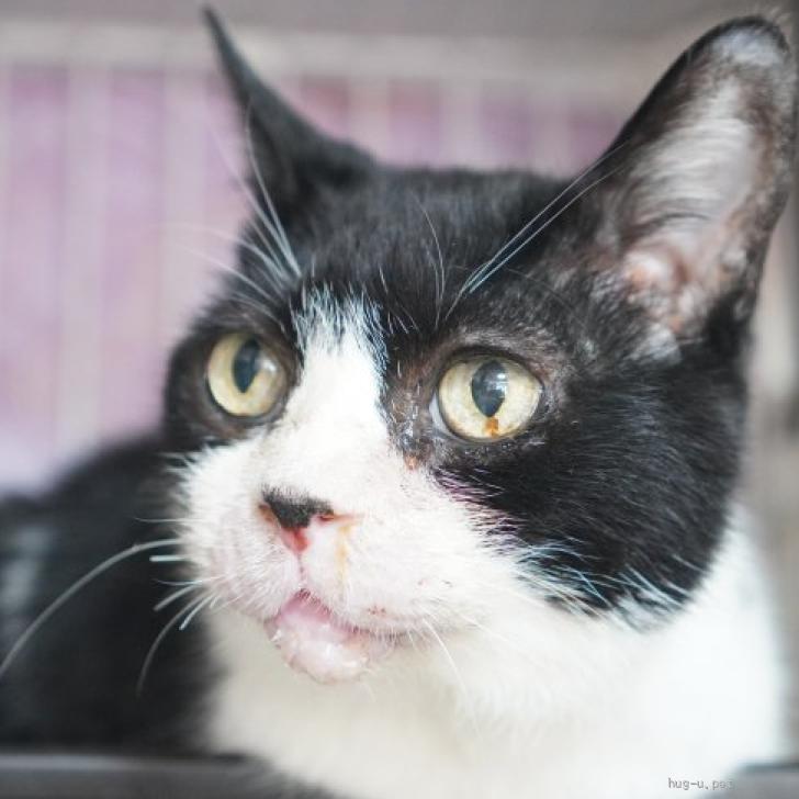 ○推定不明(シニアと思われるので、2025年4月時点で推定10歳くらい)の黒白ハチワレの男の子です。